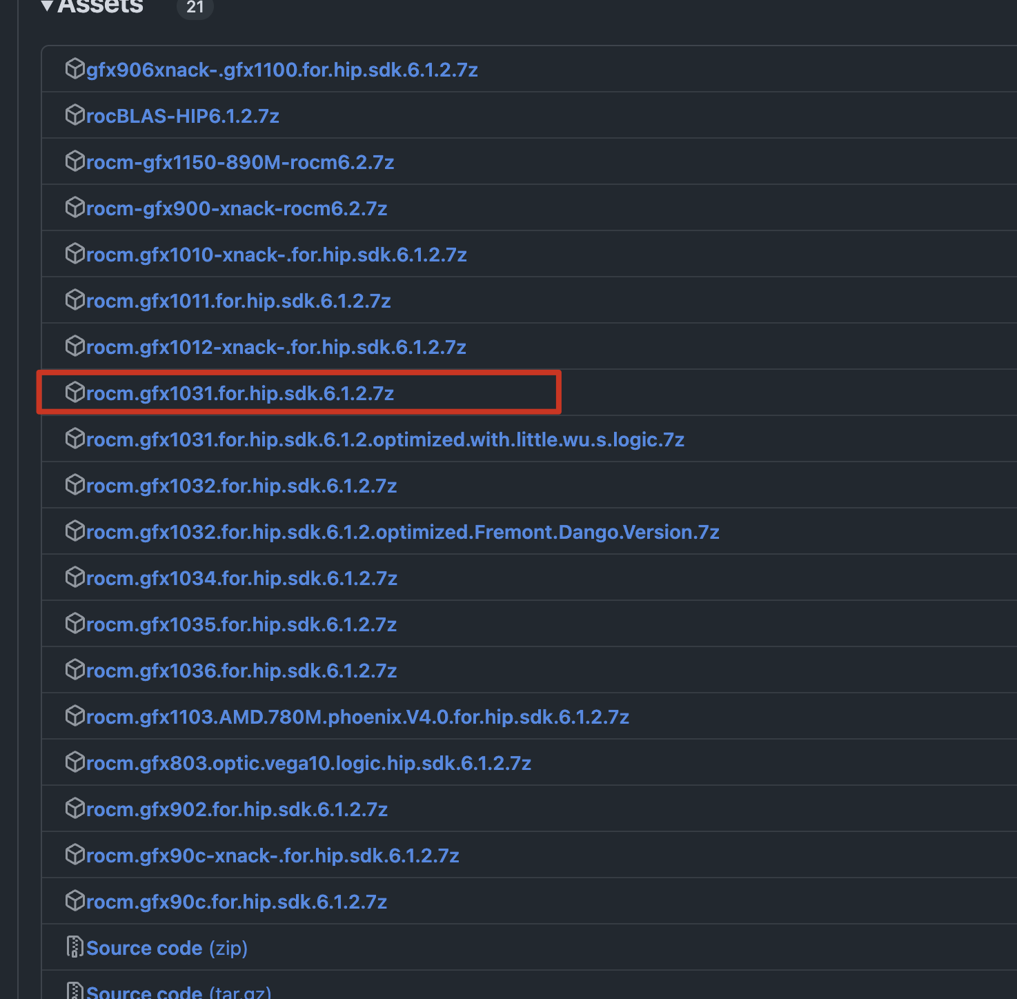 下载ROCmlib要下载对应显卡型号的,不要下错,我的6750gre对应的是gfx1031,如果是6650xt则对应gfx1032